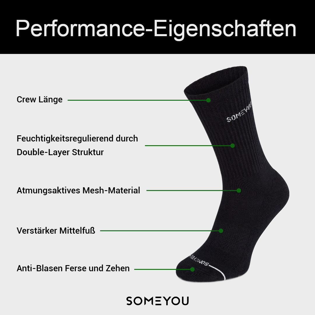 Unsere Performance-Sportsocken aus Bio-Baumwolle bieten dir maximalen Komfort und Atmungsaktivität. Dank feuchtigkeitsableitenden Eigenschaften und einer perfekten Passform bleiben deine Füße trocken und frisch. Der doppelte Garn und die dämpfende Sohle sorgen dafür, dass sich deine Füße auch nach einem harten Workout oder einer anstrengenden Wanderung noch gut fühlen. Gemacht für Sportlerinnen und Sportler!