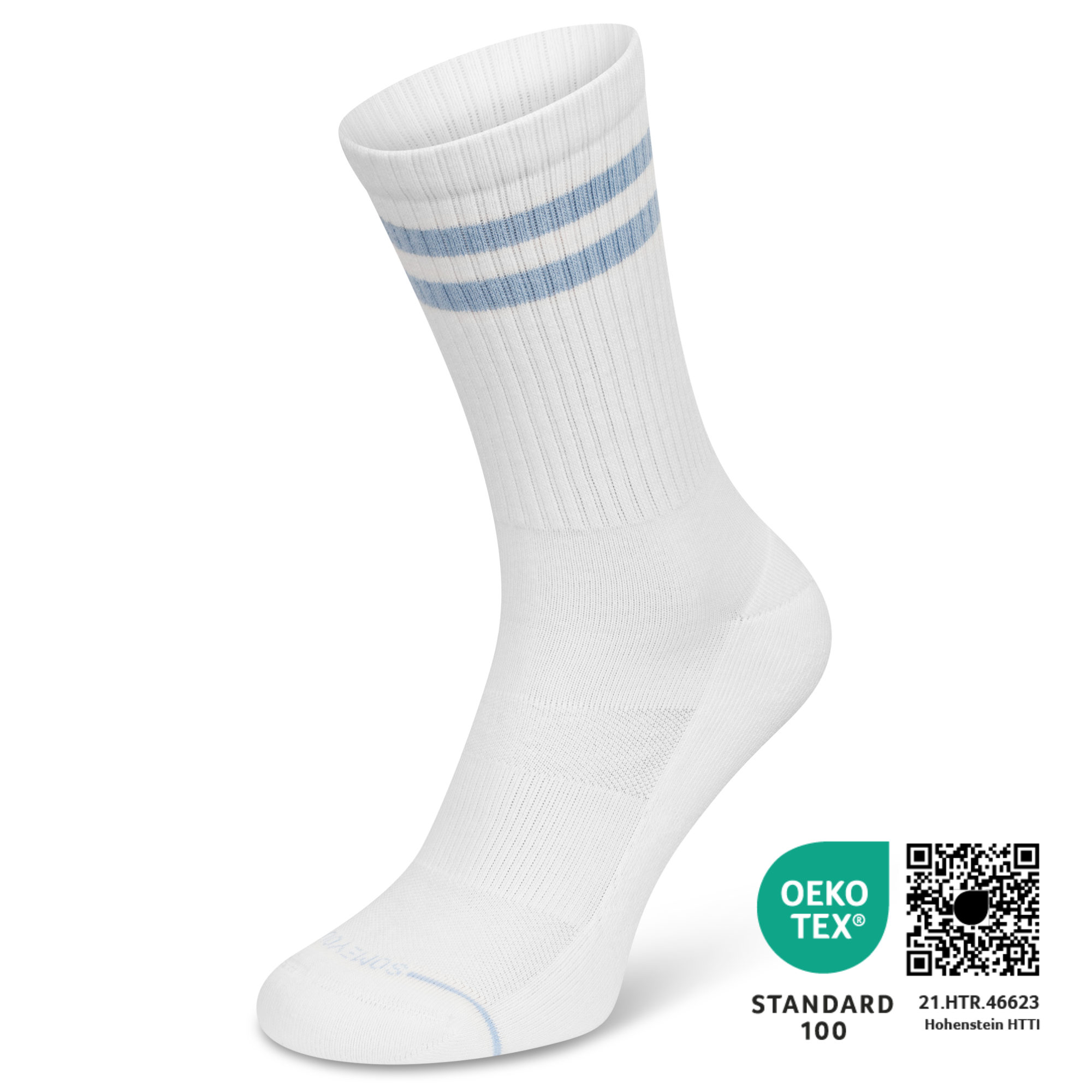 Unsere Tennissocken kombinieren coolen Style mit modernem Komfort. Aus einem nachhaltigen Mix aus Bio-Baumwolle, recyceltem Polyamid und Elasthan bieten sie Weichheit, Formbeständigkeit und einen perfekten Sitz.