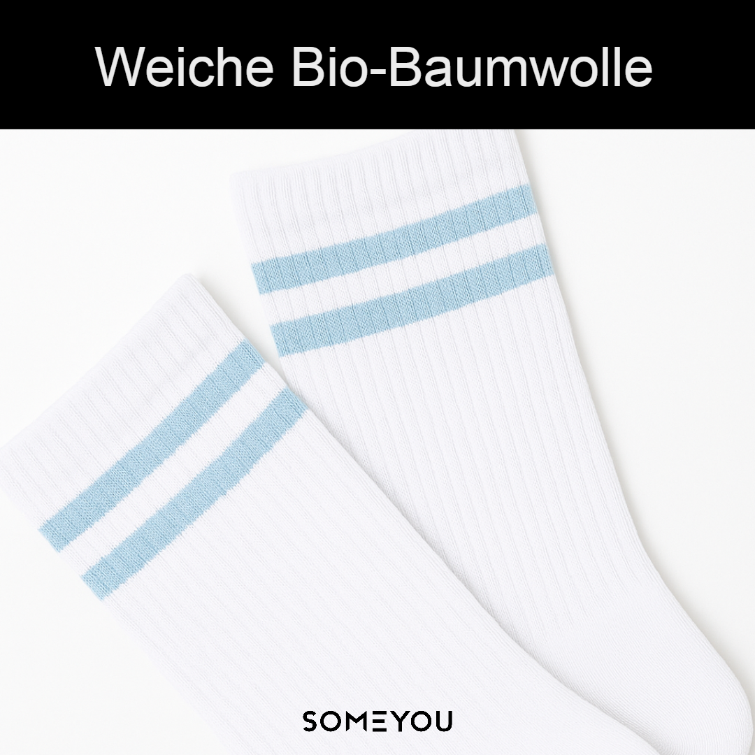 Tennissocken | 4 Paar | Streifen Hellblau