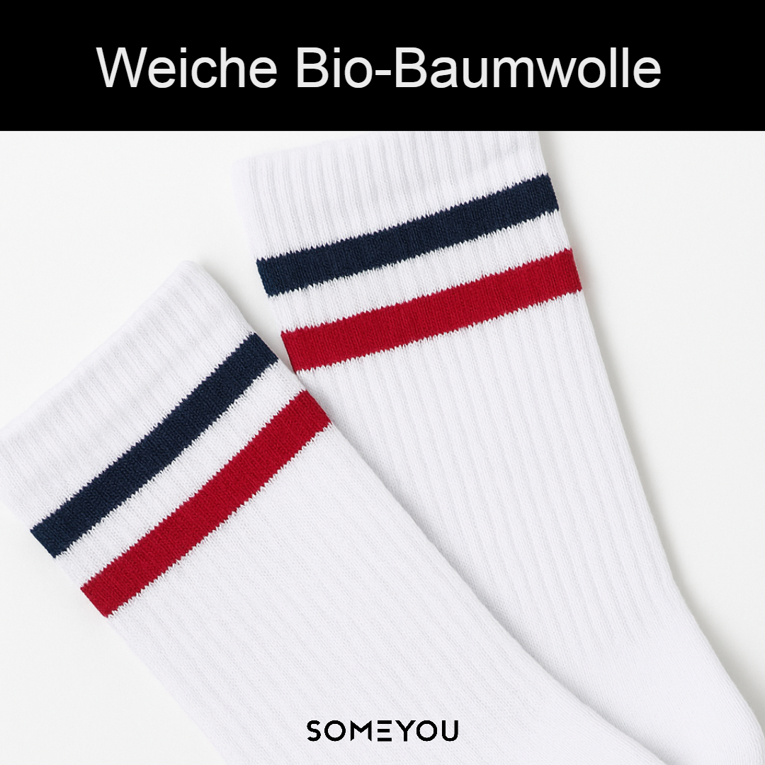 Tennissocken | 4 Paar | Streifen Rot / Blau