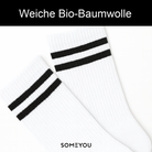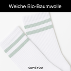 Unsere Tennissocken kombinieren coolen Style mit modernem Komfort. Aus einem nachhaltigen Mix aus Bio-Baumwolle, recyceltem Polyester und Elasthan bieten sie Weichheit, Formbeständigkeit und einen perfekten Sitz.